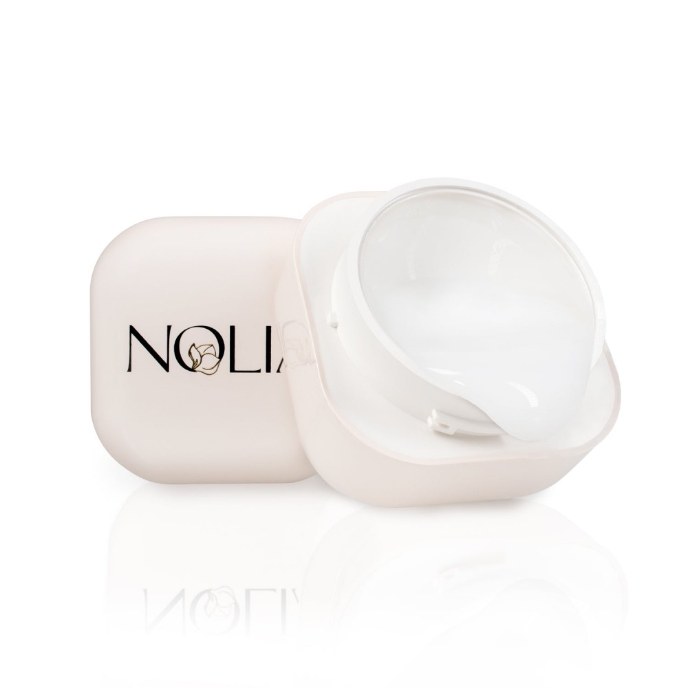 - Préparation de l’ongle : repousser les cuticules, matifier légèrement, dépoussiérer et dégraisser l’ongle naturel, appliquer le système d’ adhésion Nolia selon le protocole recommandé.