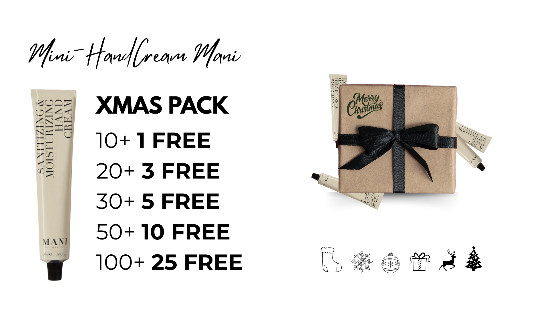 Scegli la Mini Crema Mani MANI – la piccola attenzione che fa la differenza. La sua formula innovativa, disinfettante e ultra idratante, offrirà alle tue clienti mani morbide e protette per l’inverno. Un regalo elegante, utile e conveniente.